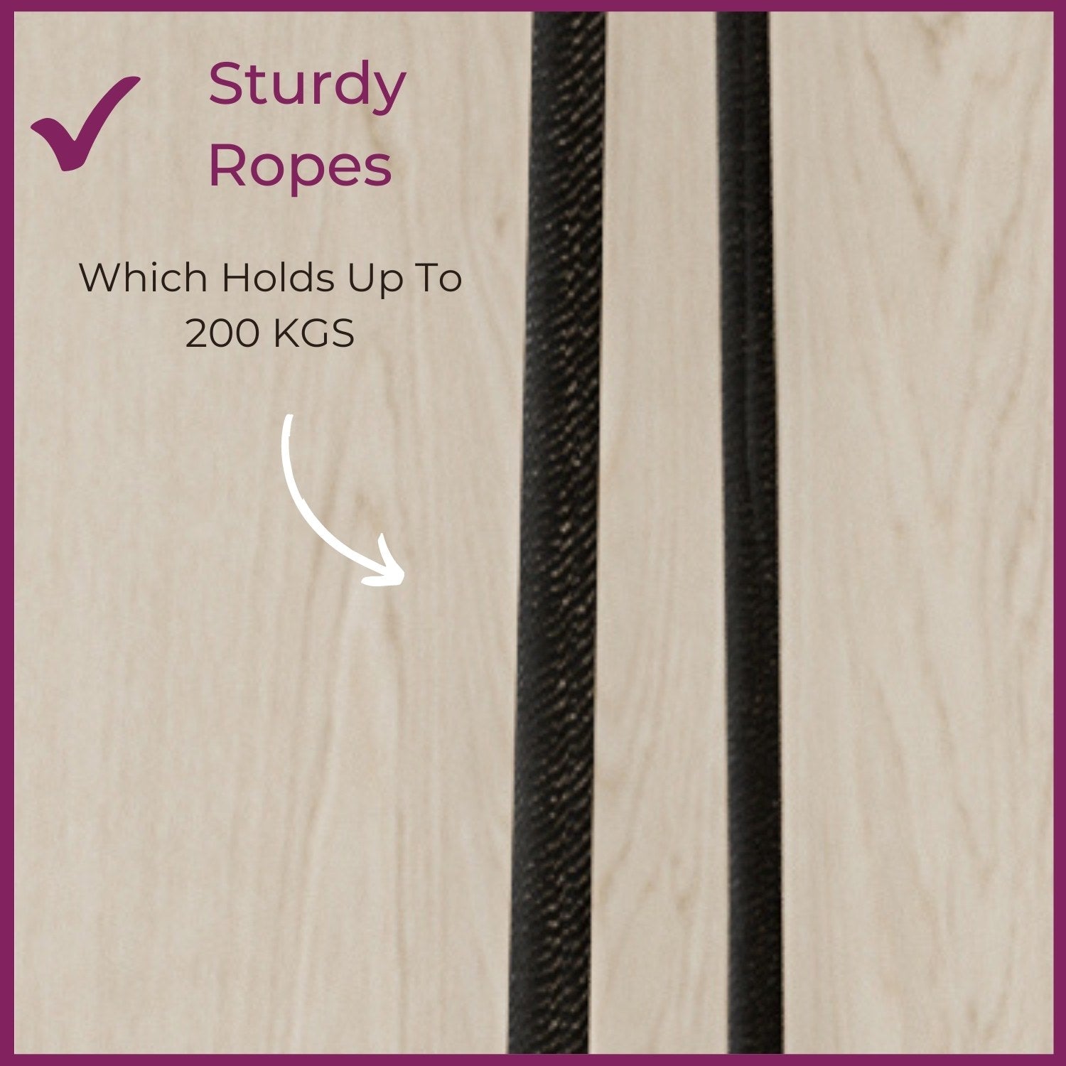 Sturdy ropes which holds to 200 KGS