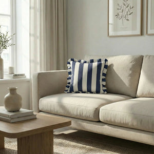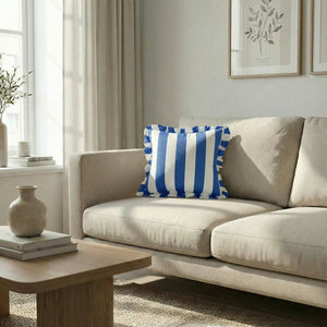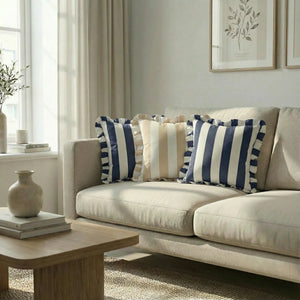 The Solva Cushion adds a fresh, relaxed character to your living space with its timeless striped design and soft ruffled edges. Designed to bring balance between comfort and visual charm, it works beautifully on sofas, armchairs, beds, or reading corners.