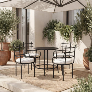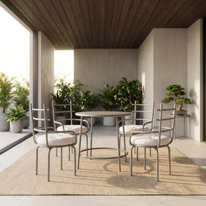 The Astra Set brings modern elegance and relaxed comfort to any dining space — indoors or outdoors.