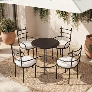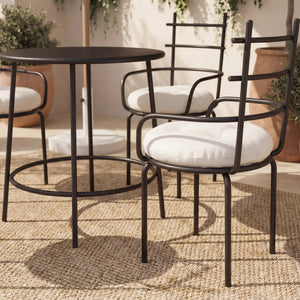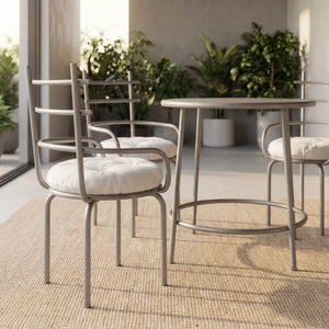 Designed with clean lines and a lightweight aluminum frame, each chair features a supportive backrest and a soft round cushion filled with premium fiber for gentle, everyday comfort. The airy silhouette gives the set a fresh, contemporary look that fits beautifully on patios, balconies, terraces, and cozy indoor corners.