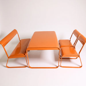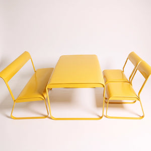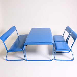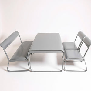 The Drova Set brings bold, modern design to any space with its fully metal construction and smooth, continuous curves. Built from durable powder-coated steel, every piece is sturdy, easy to clean, and resistant to daily wear. The rounded edges and bent-metal structure create a comfortable seating experience without the need for cushions, while the open-frame silhouette keeps the look light and contemporary.