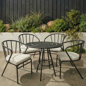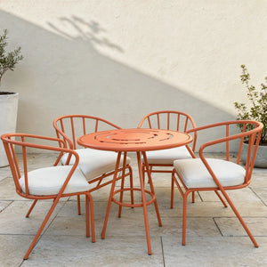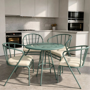 The Zyra Set combines sculptural form with everyday function — designed to elevate both indoor and outdoor spaces. Built with a lightweight yet sturdy aluminum frame, it’s easy to move and made to last. Its curved backrest and slim legs create a modern, airy silhouette, while the cushioned seats offer long-lasting comfort.